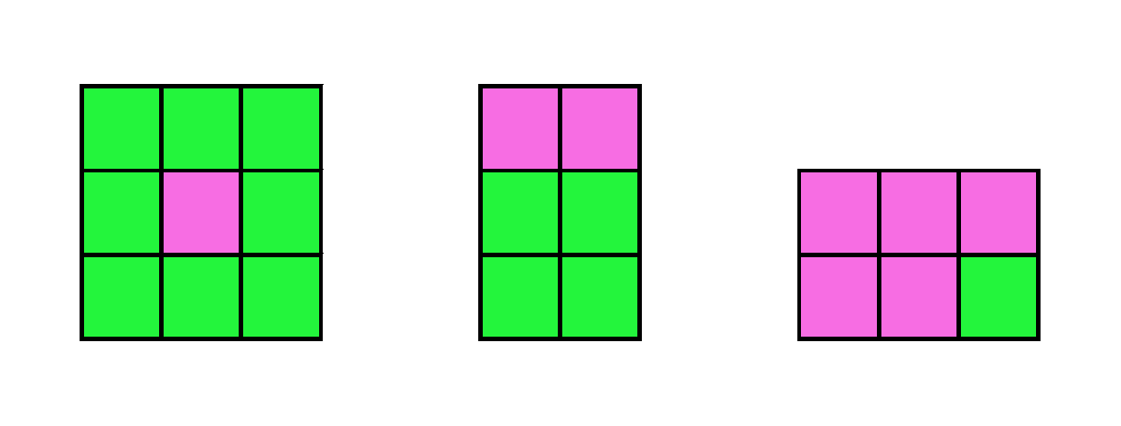 - Tất cả ô được tô bởi một trong hai màu có ít nhất một màu tạo thành hình chữ nhật.